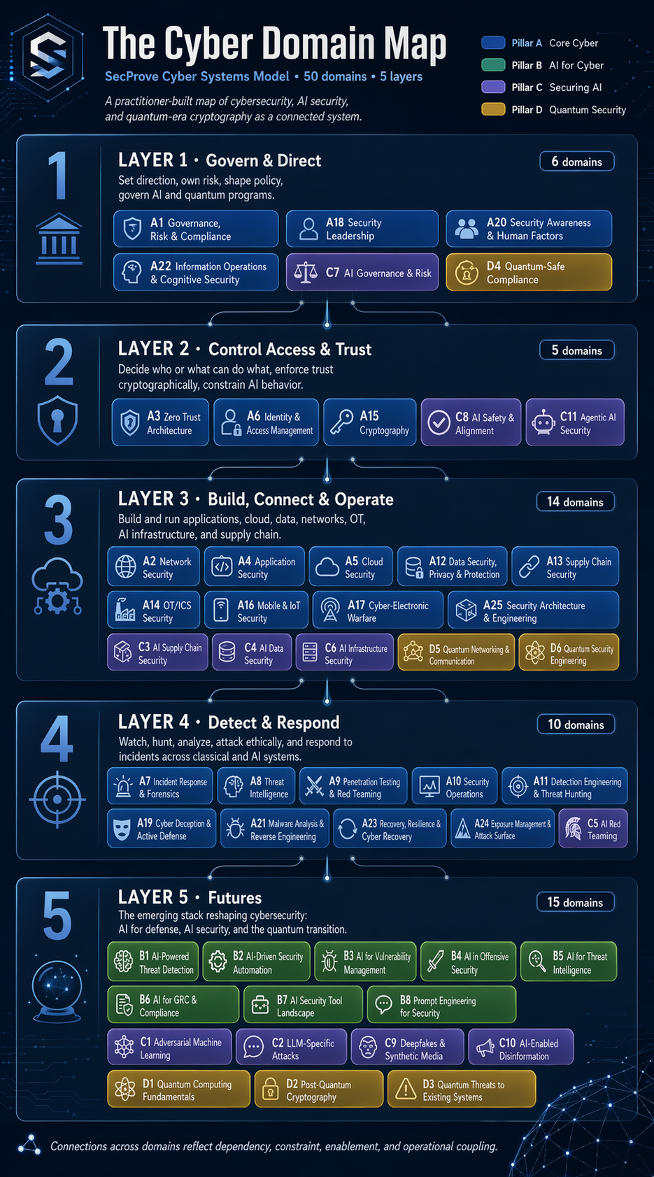 Why it matters: Architecture is where identity, crypto, network, cloud, and data primitives get composed into a defensible whole. CISSP, CCSP, zero-trust literature, and cloud reference architectures all treat architecture as its own specialty — not an implicit sub-skill of AppSec or Cloud.